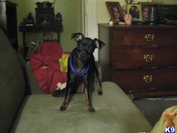 Black tan w/ a tiny white spot in chest less than 1/4inch weighs 11lbs.
