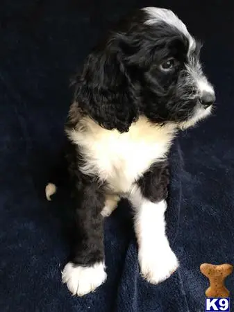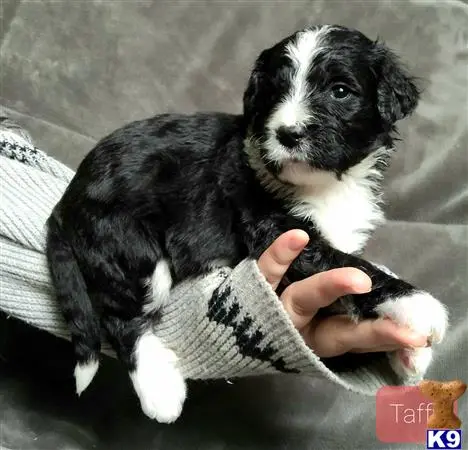 Taffy is a classic Tuxedo female puppy with perfect markings and is black and white. She has the perfect white face stripe, paws, chest, tail tip and back of neck has half collar in zig zag pattern. Taffy is adorable and the smallest of her litter. She will be around 55lbs to 80lbs full grown