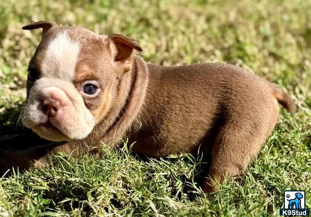 Celine is a pretty chocolate tri female English Bulldog puppy. Our adorable puppies come with a 1-year health guarantee and are loved and socialized from birth. These happy little babies are vet-checked, vaccinated, and dewormed - ready to bring joy to your home! Call or text Adele anytime with questions or to learn more! We use TLC Nanny Service to fly our puppies in-cabin, where they travel safely and comfortably with their nanny as a carry-on. Delivery is available anywhere in the continental United States, and ground transport options are also available. Bring home a Tankr Tot where love and quality meet one perfect Bulldog at a time!