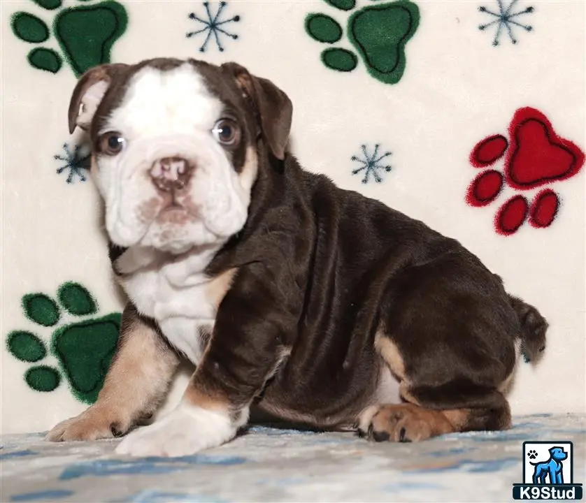 Ethan is a chocolate tri male English Bulldog puppy. Our adorable puppies come with a 1-year health guarantee and are loved and socialized from birth. These happy little babies are vet-checked, vaccinated, and dewormed - ready to bring joy to your home! You can see more pictures and video of our puppies at www.tankrtots.com. Call or text Adele anytime with questions or to learn more! We use TLC Nanny Service to fly our puppies in-cabin, where they travel safely and comfortably with their nanny as a carry-on. Delivery is available anywhere in the continental United States, and ground transport options are also available. Bring home a Tankr Tot where love and quality meet one perfect Bulldog at a time!