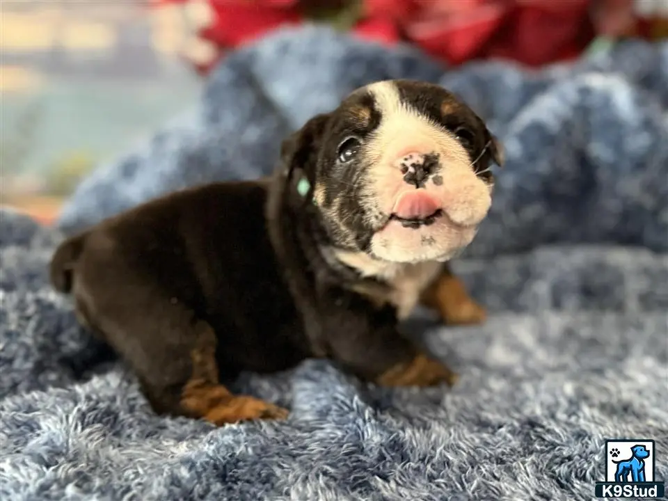 Meggie black trindle female English Bulldog puppy. Our adorable puppies come with a 1-year health guarantee and are loved and socialized from birth. These happy little babies are vet-checked, vaccinated, and dewormed - ready to bring joy to your home! You can see more pictures and video of our puppies at www.tankrtots.com. Call or text Adele anytime with questions or to learn more! We use TLC Nanny Service to fly our puppies in-cabin, where they travel safely and comfortably with their nanny as a carry-on. Delivery is available anywhere in the continental United States, and ground transport options are also available. Bring home a Tankr Tot where love and quality meet one perfect Bulldog at a time!