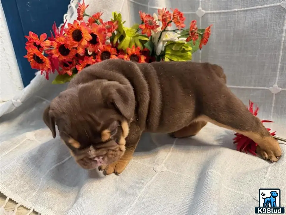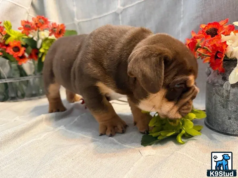 Rocky is a chocolate tri male English Bulldog puppy. Our adorable puppies come with a 1-year health guarantee and are loved and socialized from birth. These happy little babies are vet-checked, vaccinated, and dewormed - ready to bring joy to your home! You can see more pictures and video of our puppies at www.tankrtots.com. Call or text Adele anytime with questions or to learn more! We use TLC Nanny Service to fly our puppies in-cabin, where they travel safely and comfortably with their nanny as a carry-on. Delivery is available anywhere in the continental United States, and ground transport options are also available. Bring home a Tankr Tot where love and quality meet one perfect Bulldog at a time!