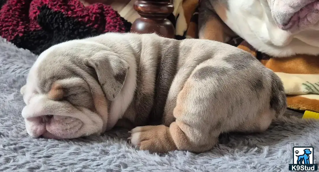 Bertie Bot is a lilac tri merle female English Bulldog puppy. Our adorable puppies come with a 1-year health guarantee and are loved and socialized from birth. These happy little babies are vet-checked, vaccinated, and dewormed - ready to bring joy to your home! You can see more pictures and video of our puppies at www.tankrtots.com. Call or text Adele anytime with questions or to learn more! We use TLC Nanny Service to fly our puppies in-cabin, where they travel safely and comfortably with their nanny as a carry-on. Delivery is available anywhere in the continental United States, and ground transport options are also available. Bring home a Tankr Tot where love and quality meet one perfect Bulldog at a time!