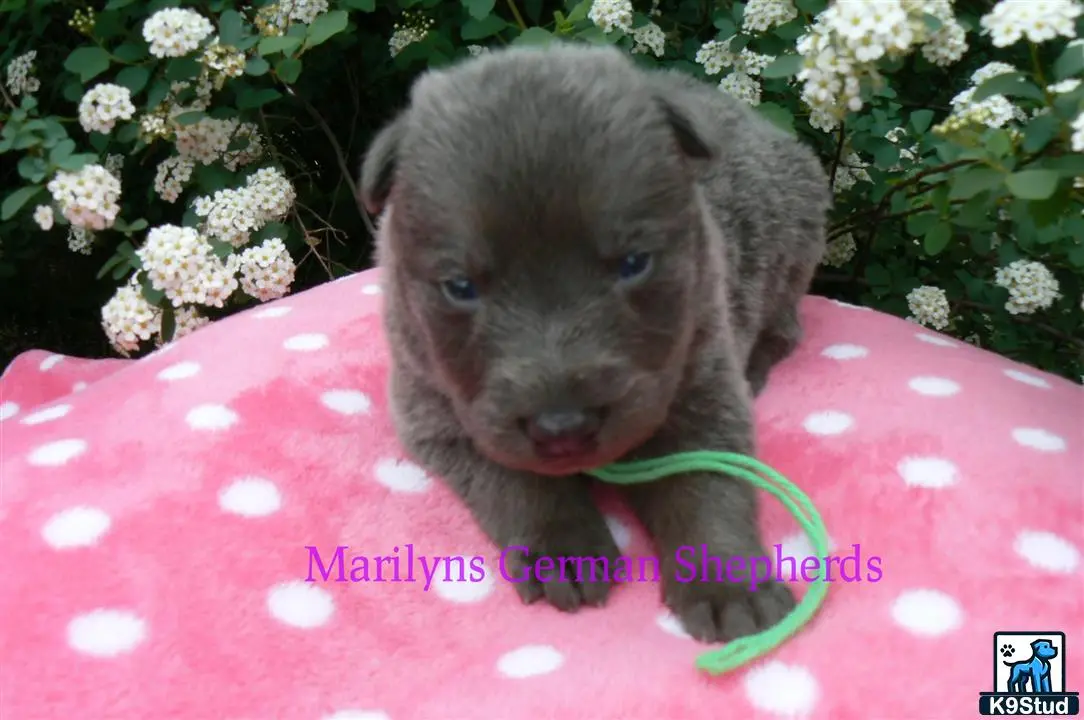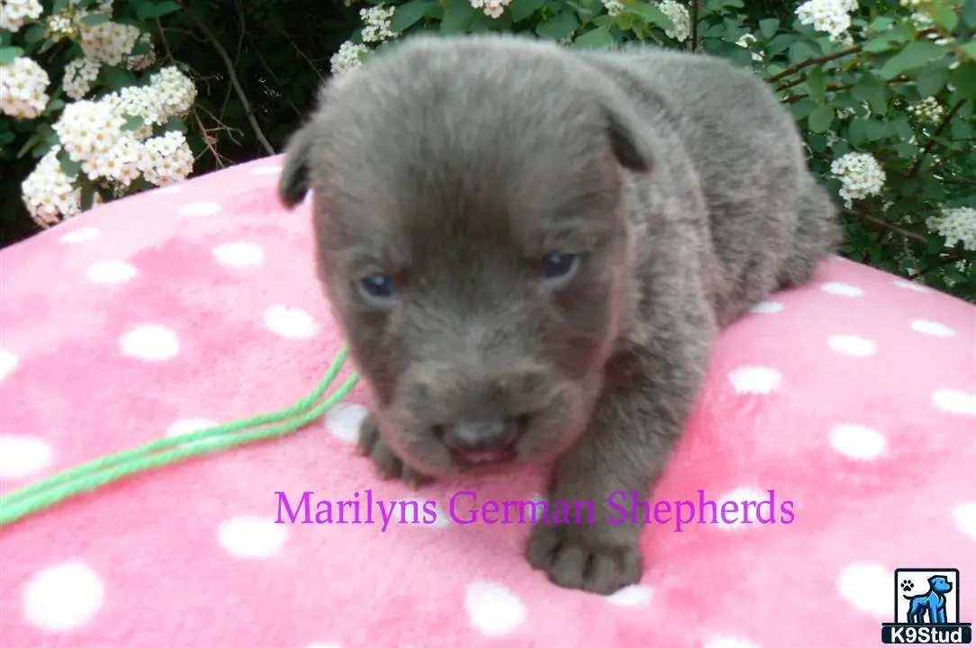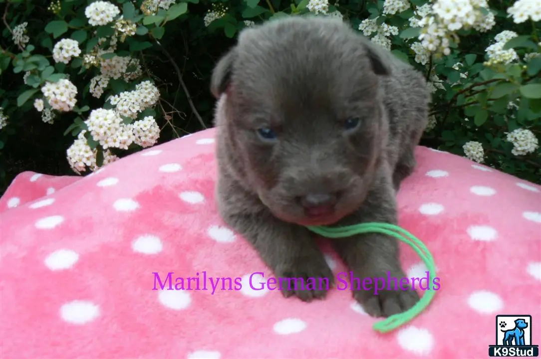Foxys Mr. Key Lime Cake Pop is a solid blue male puppy born 3-25-26, priced at $2350.00 with limited registration and a neuter contract. He has the option of PayPal Later payment plan through my website. His registration is AKC, American Kennel Club. He has a calm personality. He is a sweet boy that likes to cuddle. He has blue eyes. As an adult his eyes will stay blue or turn green or a gold hazel color. He is a very friendly puppy. He enjoys attention. He likes to play with his brothers and sisters. He has a soft short blue and silver coat. The color blue on a German Shepherd is a soft gray color. He is a short coat puppy. He is very alert and smart. He likes to be with people. He is a wonderful German Shepherd puppy. His mother is Foxy, my blue and tan mom. His father is Vanillabean Noel, my Isabella dad. The color Isabella is liver and blue together. He has a puppy replacement health guarantee on genetic issues until one year old. His shots and wormings are up to date and he has been vet checked. He comes with 30 days of pet insurance free for accidents and illnesses, that the new pet owner must activate. After the free 30 days you can keep the pet insurance or it will self cancel. He can be reserved for you with a $200.00 non-refundable deposit. I accept puppy payment through Paypal, cash, credit card, or Venmo. He is available for puppy pick up May 20th. He can be shipped. Shipping is an additional cost of $680.00 which includes crate, airfare, and health certificate. I fly my puppies on Fridays. He will make an amazing new addition to your family.