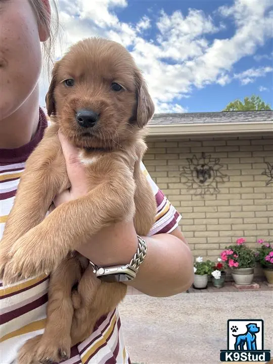 Moose is a gorgeous dark red golden with a fun white stripe down his chest. I have 5 males and 2 females left. They are all dark red, you dont see them this dark very often. Puppies are AKC. Both parents are genetically tested and dad is OFA hips and elbows. Puppies come vet checked, dewormed, and vaccinated. they are ready to go home December 20th, just in time for Christmas!