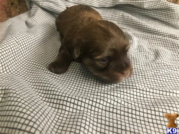 This is a solid chocolate/sable girl. This litter is between Kona and Dixie. Dixie a milk chocolate color and Kona is Dark chocolate with white. This is the first breeding between these two. Dixie is 10 pounds and Kona is 8 pounds. Both parents have been health tested. We do not like to ship our puppies and will travel to meet you for an extra charge. $300 Non refundable deposit to hold a puppy. Puppies are sold with limited registration only.