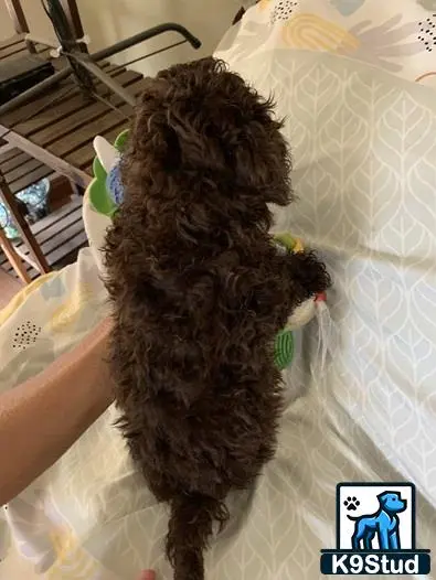 Archie has a Sweet Personality a Beautiful Curly Fluffy coat. ππΎπΆ 1st vaccines, dewormed pre- potty training doing great on pee pads. He will be Small Toy size full grown. Hazel Green Eyes, Dark Coco color, w/ a Cherry Dark Nose. His Mama is a Beautiful MaltiPoo his Dad is a French Toy Poodle. He is Intelligent, Gentle, Playful, Mellow Ative, Loves to Cuddly Extremely Affectionate! ππΎ
