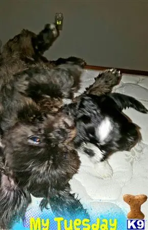 Bella is almost 9 weeks. She is black with white feet and white tip on tail. Shes very playful Utd on shots and wormed. I have no papers for her. Her parents are both around 10 pounds.