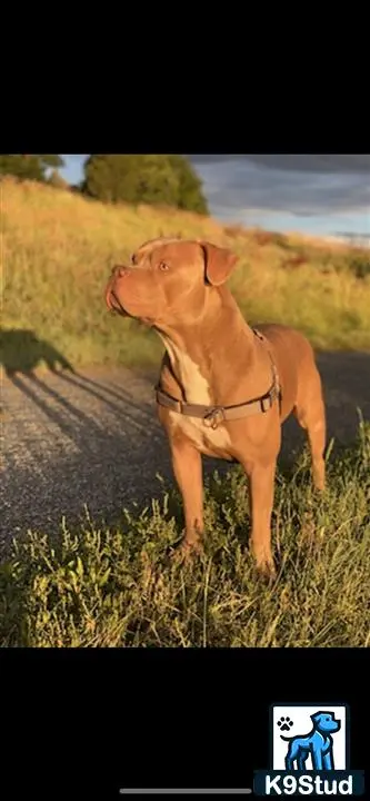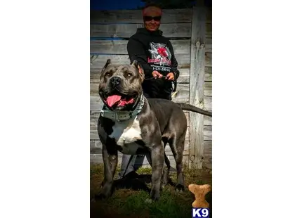 extremely happy chill dog. great around kids and other animals. no issues whatsoever. his Mom is a Pit bull, his Dad is an XL bully
