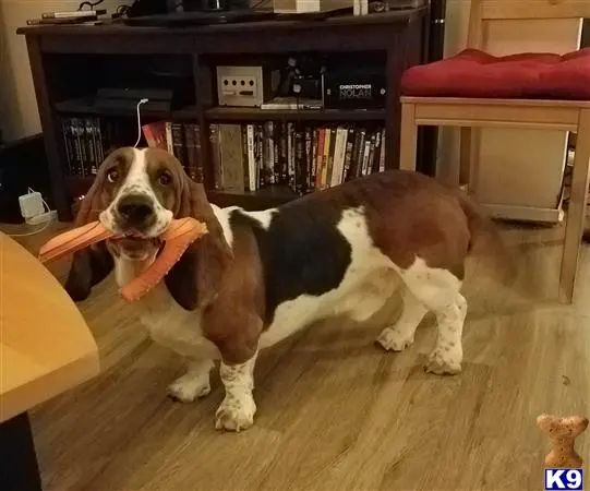 Charles is a 2 year old male Basset in Sacramento, California. He is 55 lbs and has a placid easy going temperament. He is playful and well motivated for tricks. Charles has a lot of personality and loves to play with other dogs and cuddle with his human family. He is a confident boy and loves to go on adventures.
