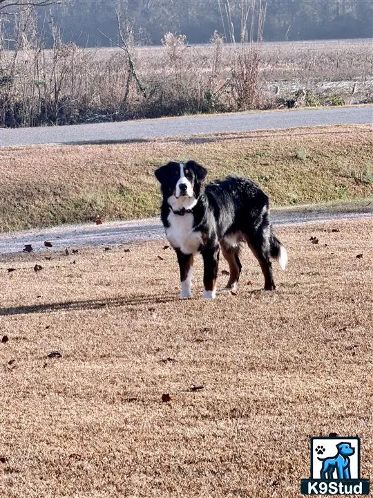 75 lbs, strong bloodline. Striking tri-color male with a solid build, beautiful markings, and a gentle, affectionate temperament. Great with children, well-mannered, and true to breed. Produces gorgeous, even-tempered puppies.