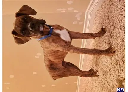 Very handsome and outgoing, Coco is a flashy fawn AKC boxer stud, available to approved females only.