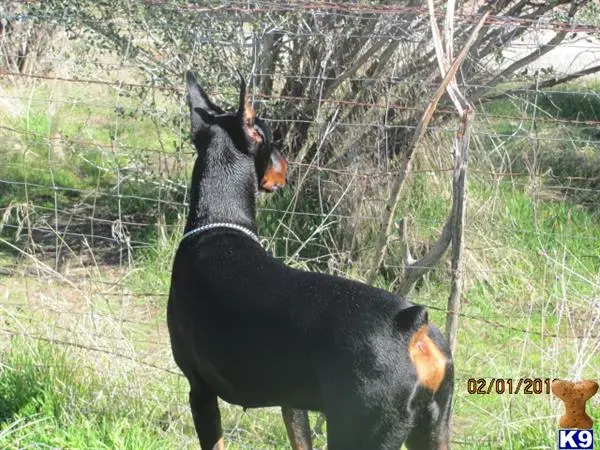 Beautiful and Intelligent Full European Russian/Serbian bloodlines Blk/Tan Doberman, 2 and half, 105 lbs, great bone, beautiful head. Tebow is a standout Doberman and is ready to breed and is very trainable.. Basic obedience, house trained, good with kids, cats, livestock, never even killed a chicken. My vet says I have Pluto, he liked him very much. I already have people who want puppies, he is very well balanced and the best puppy Grand Slam Dobermans had ever produced at the time. He is from working lines and I intended to do search and rescue and then hobby breed. re today, 12 months, and 8 months At 2 and half years old he is quite the eye candy and is quite the big puppy, loves to play and ride in the car. I am located in Stockton area, CA. Thank you so much for looking. I have more pics and video clips.