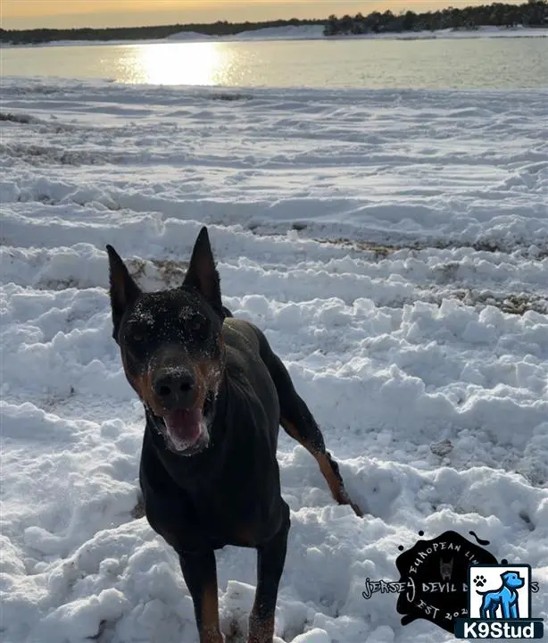 JerseyDevilKarma Call name Karma is a remarkable European Doberman, in lineage has multiple Champions in it, Karma also has many AKC titles, working titles, and in 1st in the nation for his class and 3rd overall in Barn Hunt scent work. Karma has a beautiful temperament and beautiful Carmel eyes. Karma weighs 97 pounds of pure muscle. All health test came back perfect! Clear of DCM 1 2 and all other genetic variants. Pen Hip is excellent, Eyes Clear, Echocardiogram Normal.
