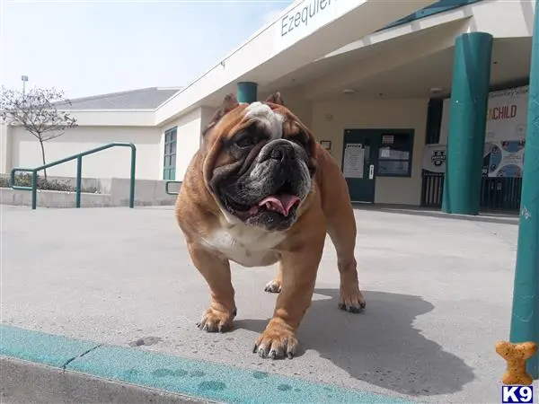 Mr. Ammo is AKC English Bulldog with great health record he weighs about 75lbs and is 24in long height at shoulders is about 12in great skin conditions he is a show stopper always get complements pictures do not do justice for him must see in person AKC triple carrier Sire Olveras Deebo what u got on my drank Dam Chiquita XV Great health Nick names Butterball, Teddy Bear if you have any questions please text only
