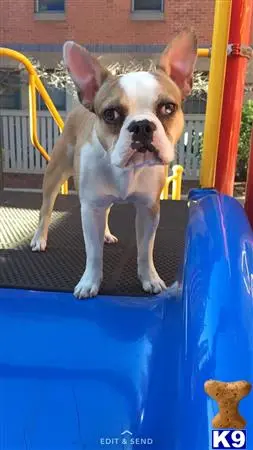 Timmy is very friendly, loving, playful, and intelligent. He is half french bulldog half boston terrier. He has one brown eye and one eye that is half brown and half blue. In his litter, there were puppies that had all blue eyes and some with all brown. Please do not hesitate to contact me with any questions.