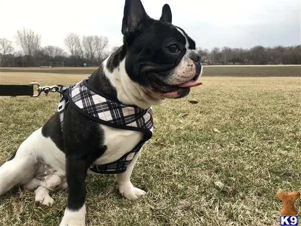 Brindle Pied French Bulldog available for stud services. Rocco is very friendly with kids and family, very high energy, and good temperament
