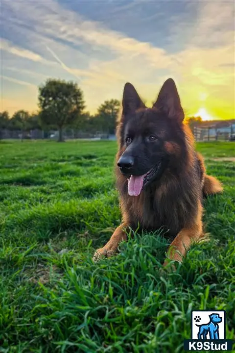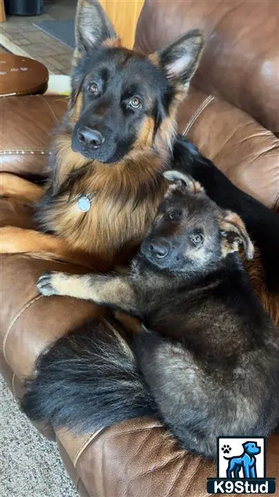 Ranger Von Schmidthof Black and Red long haired show line. Beautiful temperament, goofy, strong, and well rounded. Ranger is AKC registered OFA good hips and normal elbows. Embark health tested. Current weight 80lbs. Available to approved females. Pedigree is full of titles. Any questions, more pics or videos please text.