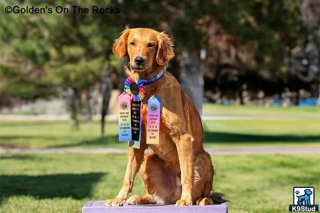 Our sweet Ridge is 3 years old, has had EXTENSIVE health testing including a semen analysis, is proven, is AKC registered, comes from a very well accomplished pedigree, and has earned multiple titles himself! He is available for live cover, fresh chilled, and maybe frozen. His health testing includes PennHIP, OFA elbows and hips certificate, OFA basic heart certificate, OFA advanced heart certificate with echocardiogram, OFA eye certificate, OFA dentition certificate, OFA patella certificate, 100 percent CLEAR Embark DNA testing, semen analysis in 2026 for live and post thaw analysis. His semen analysis and PennHIP scores are better than the breed average! You can find his health certificates on our website at GoldensOnTheRocks.com or on K9.data at k9-data.org/dog/detail/1291243. Ridge loves car rides and going hiking with us, is very effectionate, athletic, smart, likes to play fetch, is very food motivated, and enjoys cuddletime on the couch or bed with us. Ridge previously took agility and rally classes and really enjoys it. He has wonderful athletic abilities but also has a great off switch in the house or when he is out in public. Ridge has previously earned 7 AKC titles CGC, CGCA, CGCU, TKN, TKI, ATT, and VHMA and has a very well accomplished pedigree! His father earned a MH title and his mother earned DCAT, SWAT, SWM, SHDN, DS, CGCA, and CGCU titles. Ridge is proven because he has previously sired three litters and some of his offspring are training to become service animals. He does great with live cover! We require that your female has a brucellosis test at onset of heat cycle and OFA health testing certificates for eyes, heart, hips, and elbows.