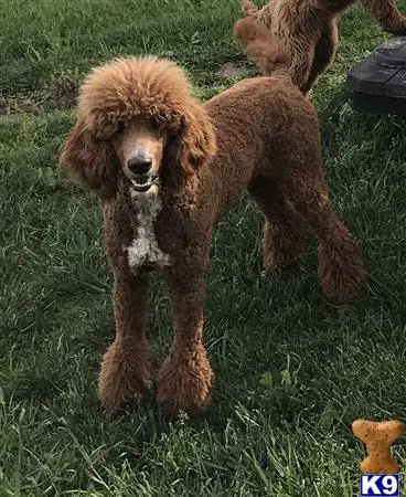 Django is extremely intelligent, gentle and gorgeous. Proven Stud. Red Standard Poodle that produces Parti, Phantom and abstracts. Genetically tested and Penn Hip certified.