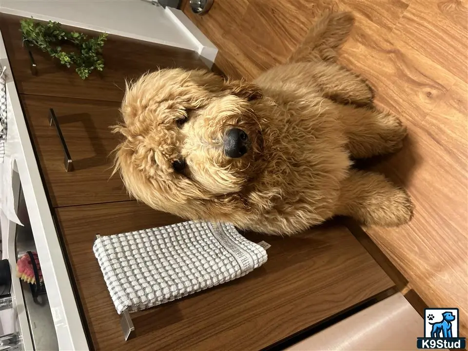 Looking to stud out my 1 year 4 months old Goldendoodle! He’s a standard size, first-generation Goldendoodle with a rare, soft, not-so-curly coat in a beautiful teddy bear golden color. Despite his size, he’s a gentle giant with a playful personality, an endless love for water, and tons of energy. He’s always ready for a walk and is sure to pass on his wonderful temperament and unique looks. Perfect for breeding if you’re looking for a loving and active companion.