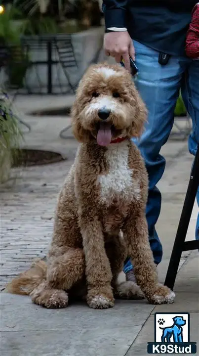 Meet Beau, a male multi-gen Medium Goldendoodle with a super curly, tan coat and charming white patches on his chest and head. At 1 1/2 years old, he’s 55 pounds, up to date on all shots and boasts an amazing temperament—patient, loyal, and especially great with kids. Beau hails from an exceptional bloodline in Central Oklahoma. Photos of his parents and siblings are available upon request. Located in New Braunfels, TX.