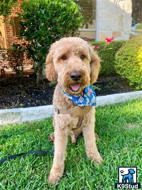 Scooby – Proven F1B Goldendoodle Stud | DFW Richardson Scooby is a 55 lb F1B Goldendoodle and proven stud 7 litters based in Richardson, TX, serving the DFW area. He is vet-checked with an extraordinary sperm count and strong natural pursuit. Scooby is genetically tested, with full results available upon request. He has a true hall-of-fame temperament—often described as more human than dog—with a notably calm and steady demeanor that has been present since puppyhood. While not especially food-driven, he thrives on long walks and jogs in the park and carries himself with an easy, confident presence.