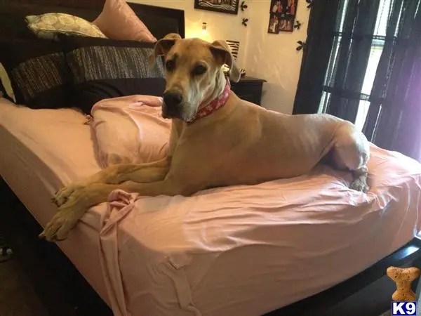 Blaize will be 4 in May. His mom was 1/2 fawn, 1/2 blue weighing approximately 125lbs. Father full blue weighing approximately 170-175lbs. He is registered with AKC and up to date on all vaccinations including Lyme disease. He is very smart, very very loveable and friendly. Also a great protector and very loyal to me. He loves kids and has never once been even slightly aggressive with another dog or person even when a situation could have been seen as a cause for aggression being hit or bit etc. Best dog I have ever had. He comes from a family of 9 siblings. Smallest sibling being around 120lbs female and largest being around 195 male. Blaize has blue eyes, was the only one in his litter with blue eyes.Just recently had a physical exam by the vet and is 126lbs and very healthy. Has had no health ailments. Is about 33 tall at shoulder. When he stands on hind legs he is around 6 tall. No one in his history has a history of any major health issues, worst health issue I am aware of is slight acne for some with the blue gene, not major. Should you want any more information please feel free to contact me. fee is negotiable. Also looking to have another puppy in near future therefore taking one of his puppies instead of fee is probable.