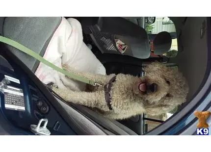 Chocolate brown male fleece coat F1 labradoodle, caramel highlights, very affectionate, strong, and smart