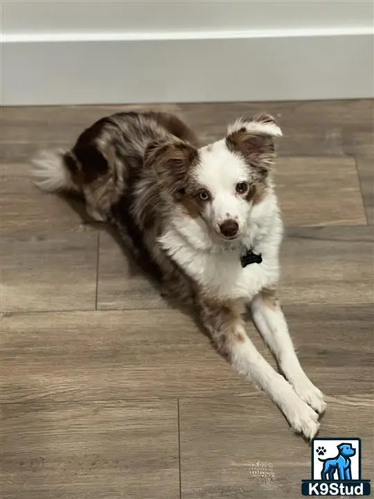 1 year old mini/toy Australian Shepherd, ASDR registered with breeding rights. Red Merle, 1 blue eye and 1 brown with partial blue. Very well behaved, intelligent, mild/calm temperament, social, and excellent with kids, cats, and other animals. Stud fee is $500.