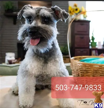 AKC Registered, Mega-Coated salt and pepper Miniature/Teacup Schnauzer, he weighs just under 5 lbs. Truman has the cutest teddy-bear eyes and nose Truman has a fantastic personality, loves him some humans and is the perfect lap dog. He is a proven breeder. Latest litter of 5 puppies delivered 11/18/17, pictures and references upon request. We expect a brucellosis test to be done prior to breeding and we will provide the same. No one wants to spread any doggy STDs. Any travel/boarding costs are incumbent on you, the dams family.