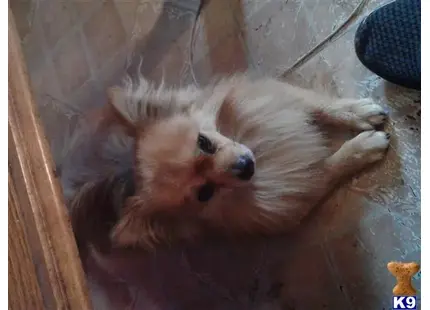 Hes brown and black, hes had 4 different litters, and he can be sweet as can be. His puppies come out all different colors so its gonna be a surprise also I have two pictures that are his old puppies so they can turn out like one of these