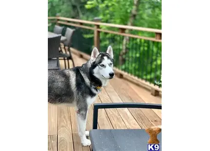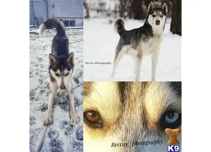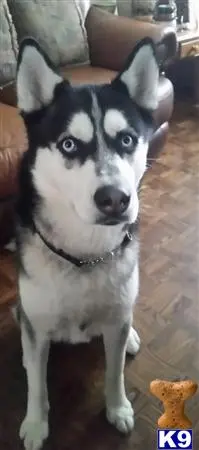 Black and white with blue eyes. Very gentle loving dog. Fathered 2 beautiful litters of 7 each.