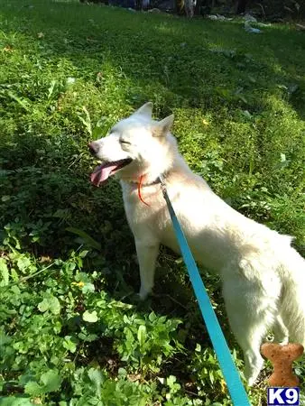 Bud is a solid white husky with one blue eye and one brown. He is a sweet and gentle giant. His mother was a akc Siberian husky with a sweet tempermant and his father is a husky hybrid who is very loyal to his family. Bud takes after his grandfather on his mothers side who was a little over a hundred pounds with a good solid build. Bud is not for sale so please do not ask. His twin sister would miss him too much. Any questions please feel free to contact me.